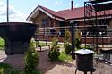 На территории обустроены спортивная площадка, зона барбекю и банный чан, вмещающий до 6 человек (за доп.плату). Установлены садовые качели и батут.