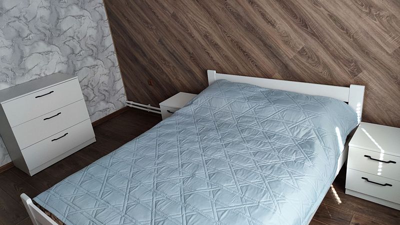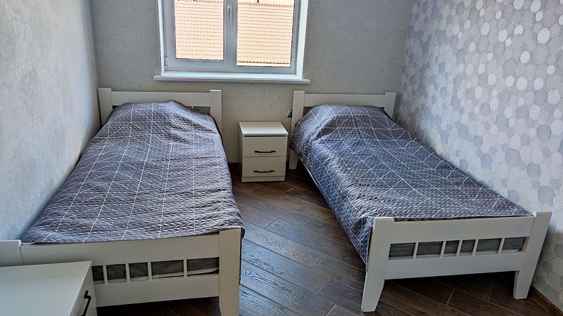Две спальни: в которых стоит большая двухспальная кровать и одна односпальная.