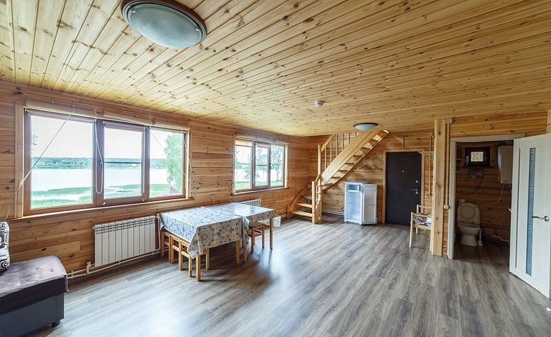 Vip-дом расположен на берегу Меревского озера, имеет два этажа. Свой собственный дворик с зоной барбекю, лежаки, уличный стол, стулья для компании. Парковочные места.