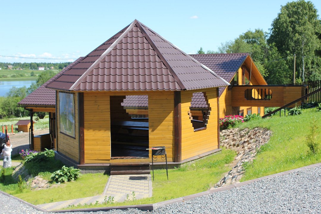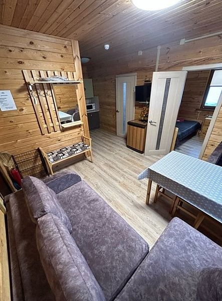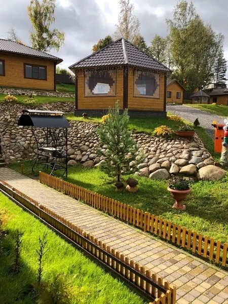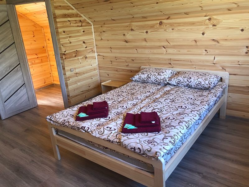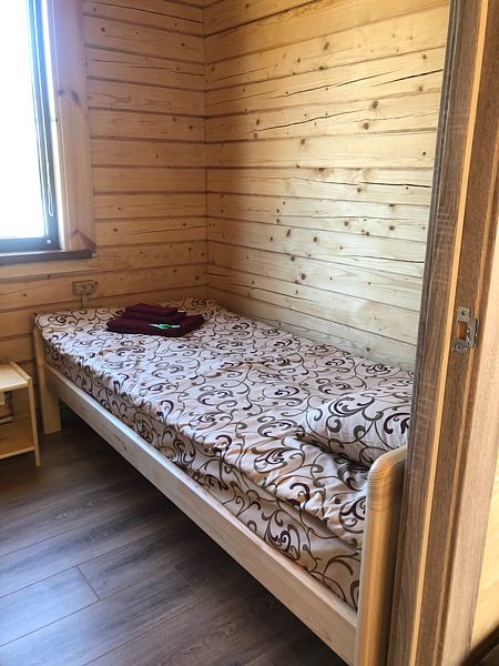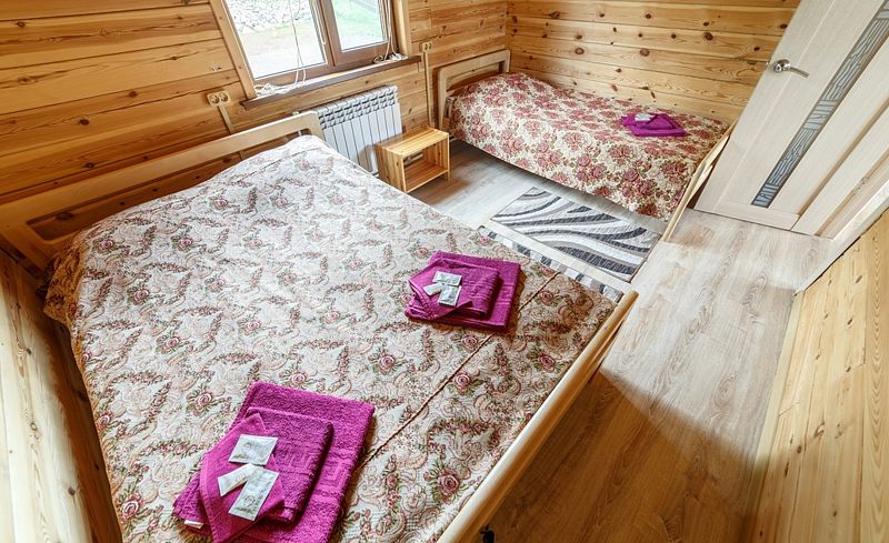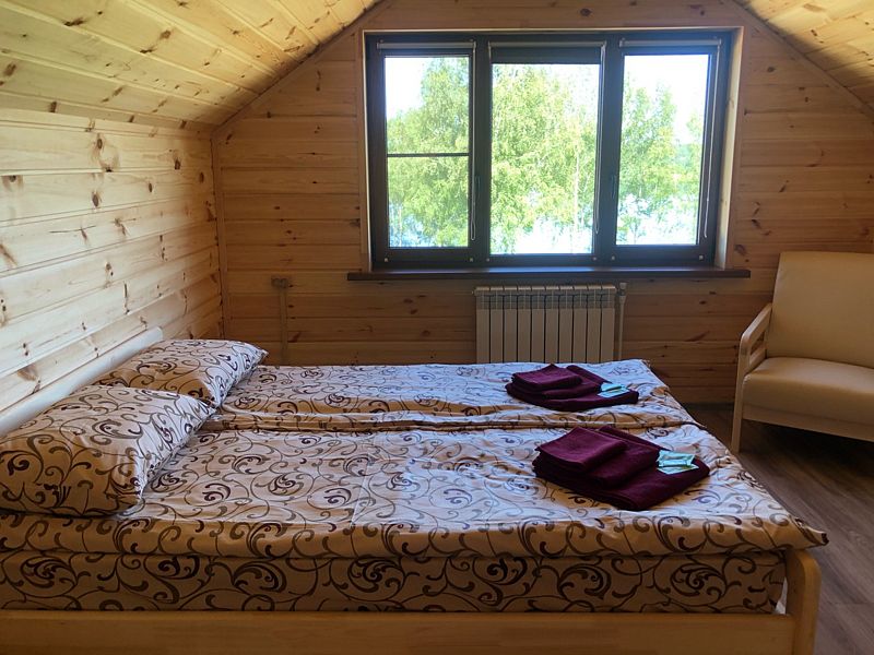В коттедже три спальни, кухня-гостиная, оборудованная всей необходимой бытовой техникой, душевая, туалет, своя небольшая терраса с прекрасным видом на озеро, также возле каждого коттеджа имеется бесплатный мангал.