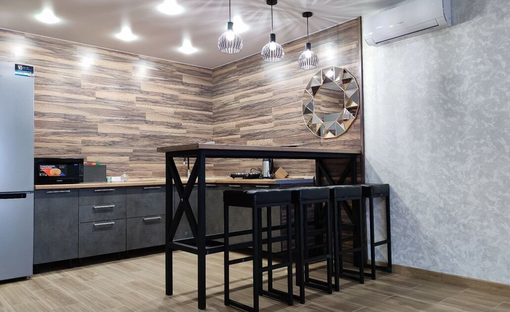 Минимальное время аренды: 2 часаВ банном комплексе созданы все условия для приятного и расслабляющего отдыха. Здесь есть просторный зал для отдыха с современной бытовой техникой и большим столом, позволяющим комфортно разместиться компании до десяти человек. Кухня оснащена всем необходимым для приготовления еды, а также имеется душевая и туалет.