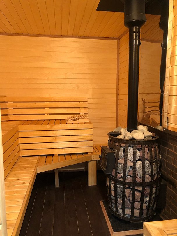 На заднем дворе комплекса расположена зона для барбекю с мангалом, где можно насладиться ароматом свежего мяса на открытом воздухе. Для посещения бани требуется предварительная запись, а минимальный срок аренды составляет два часа.