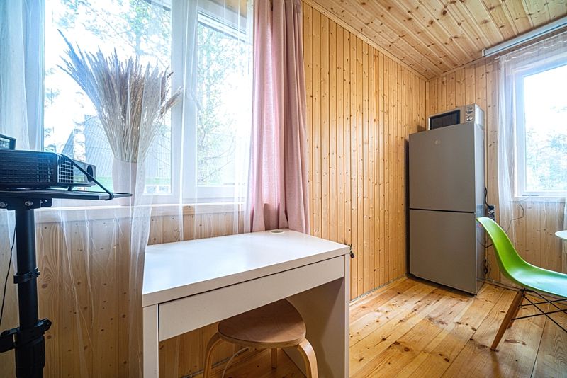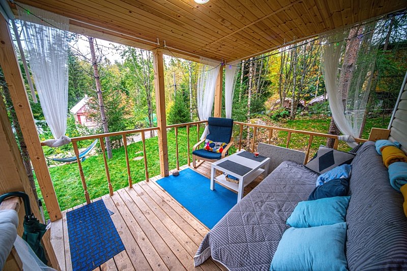 В доме имеется колонка Алиса, рабочее место с ноутбуком и интернетом и проектор для просмотра кино. Душ и туалет находятся в доме, горячая вода доступна от бойлера. В распоряжении гостей есть веранда для летних вечеров, на которой также можно смотреть кино на проекторе, телевизор с подпиской Кинопоиск, Амедиатека, Youtube , More TV).