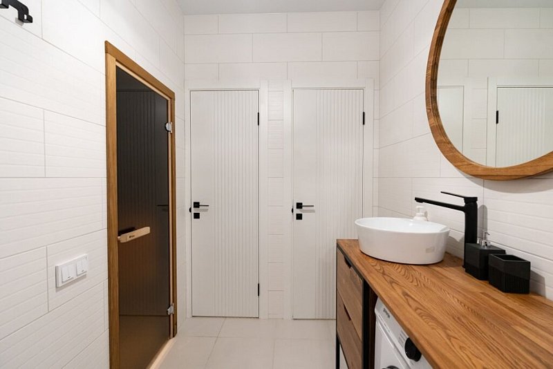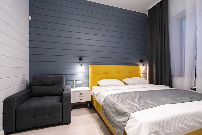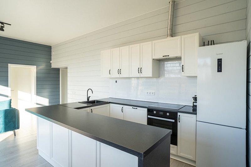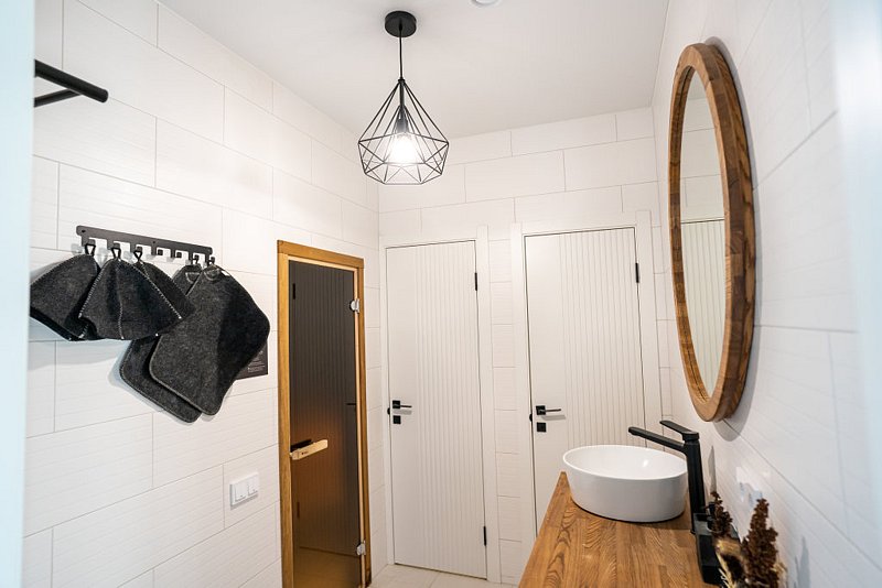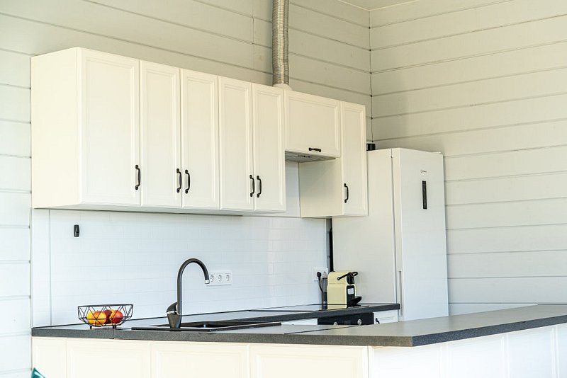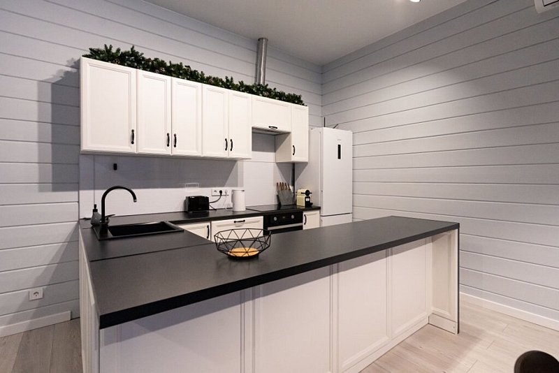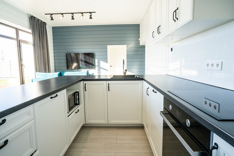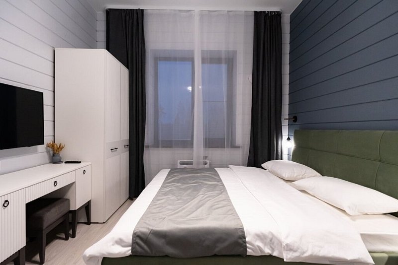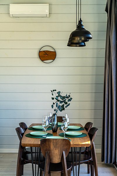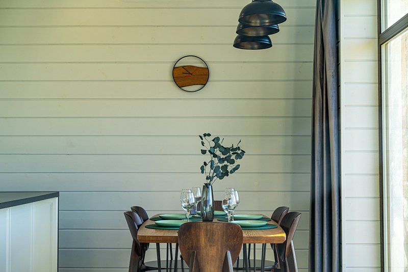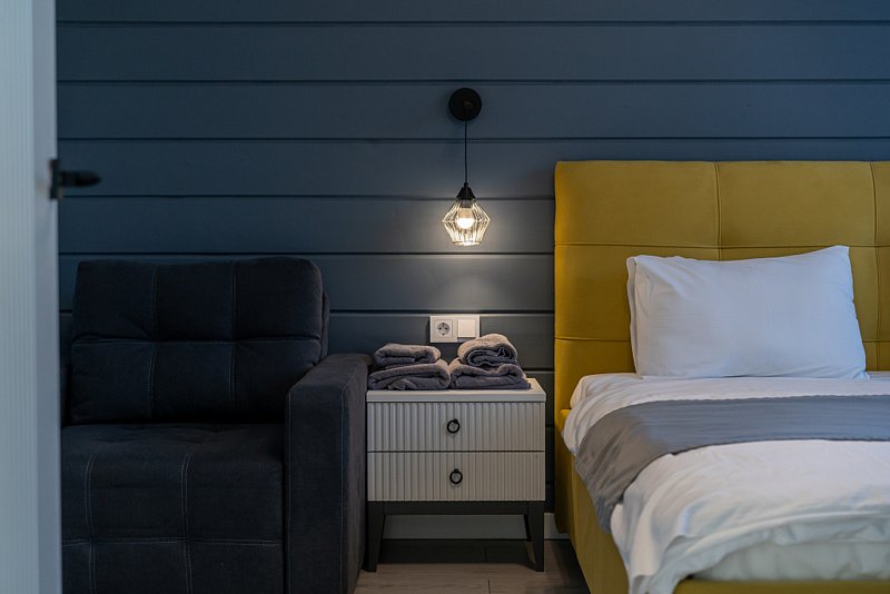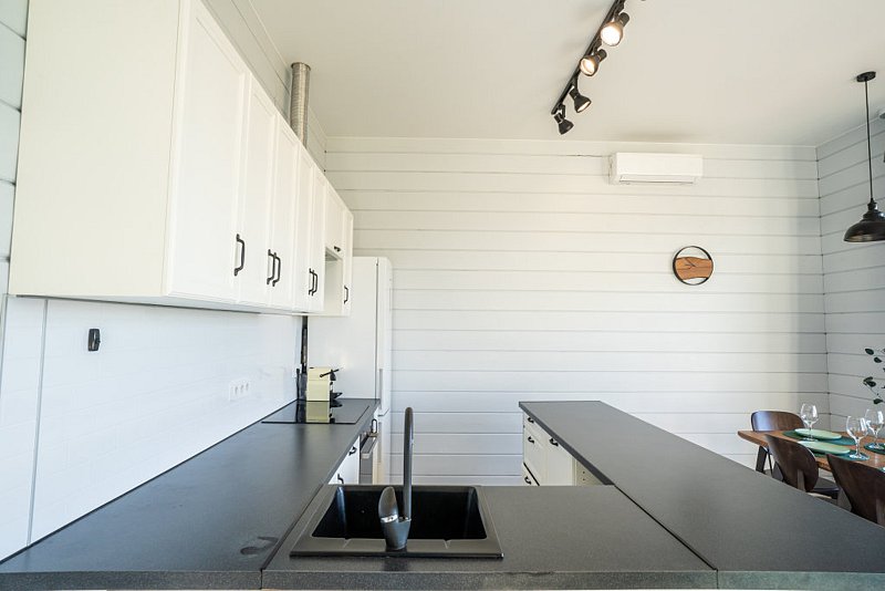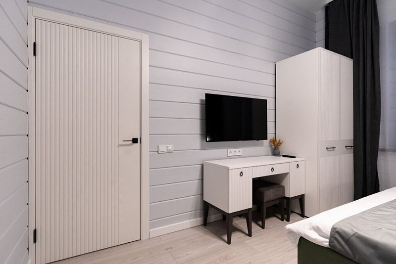 Доступны две спальни, кухня-гостиная, новая мебель, 8 спальных мест, сауна, мангальная зона, закрытая парковка на два автомобиля. Также во всех домах есть Wi-Fi, PlayStation 4, микроволновая печь, духовой шкаф, кофемашина, посудомоечная и стиральная машины, холодильник, кондиционер, телевизоры в каждой комнате, теплые полы.