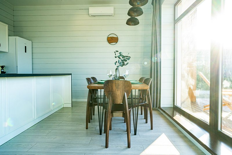 еплые, уютные дома из газобетонных блоков с панорамными окнами и высокими потолками находятся в лесном массиве. В доме две спальни, просторная кухня-гостиная, удобная новая мебель, 8 спальных мест, сауна, мангальная зона, закрытая парковка на два автомобиля.