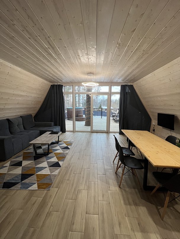 Отдых с друзьямиДостоинстваПрекрасный уютный домик. Огромный плюс - пол с подогревом, также много спальных мест и пространства. Красивый вид из бани. Доброжелательный администратор. Приятная цена. Тишина на улице - приятно посидеть в купели. Спасибо большое! Мы с подругами очень довольны! День Рождения удался!