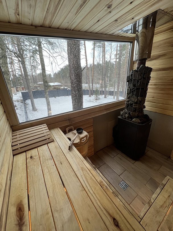 Инфраструктура: купель, зона отдыха, обливное ведроБаня на дровах (вход с вашей террасы).