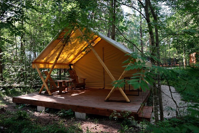 Глэмпинг — огромная брезентовая стационарная палатка на деревянном настиле.
