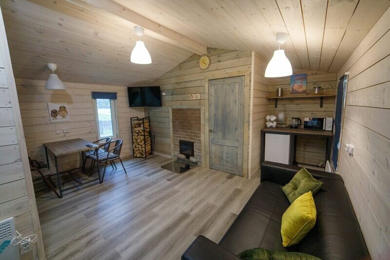 В гостиной оборудована кухонная зона со всем необходимым. В коттеджах - конвекторы. Ванная комната. На территории бесплатный Wi-Fi.