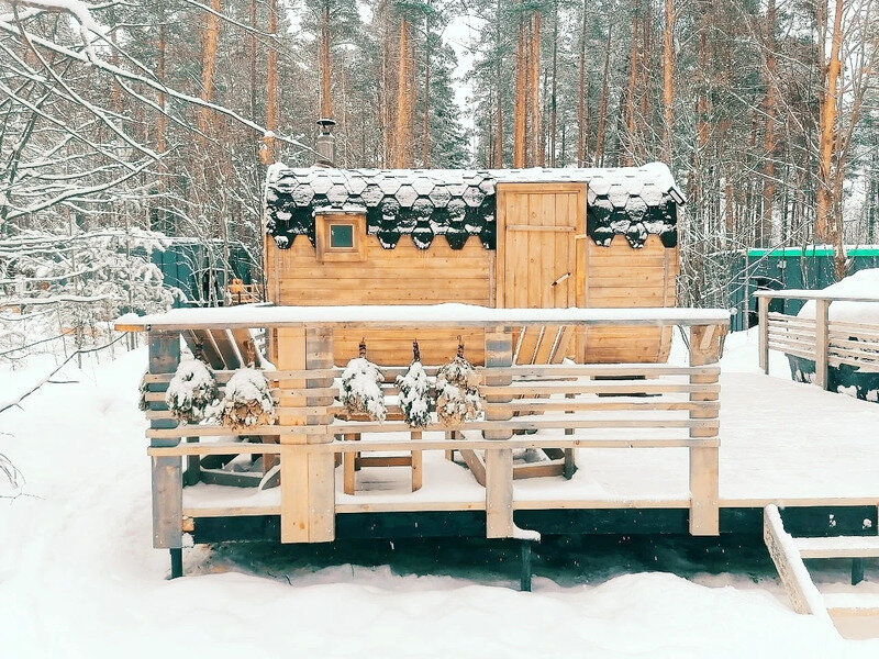 Баня-бочка и чан бронируются от 2х и от 3х часов (соответственно) — отдельно. Теперь есть на локации баня комфорт до 6ти гостей!