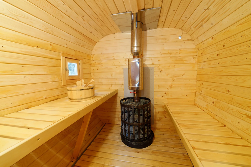 Горячие ванны на открытом воздухе. Деревянная круглая бочка с удобными сиденьями и подсветкой, наполняется тёплой водой (t-35-45С). По запросу наберём холодную воду для сочетания с горячими банными процедурами.