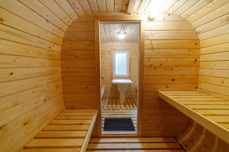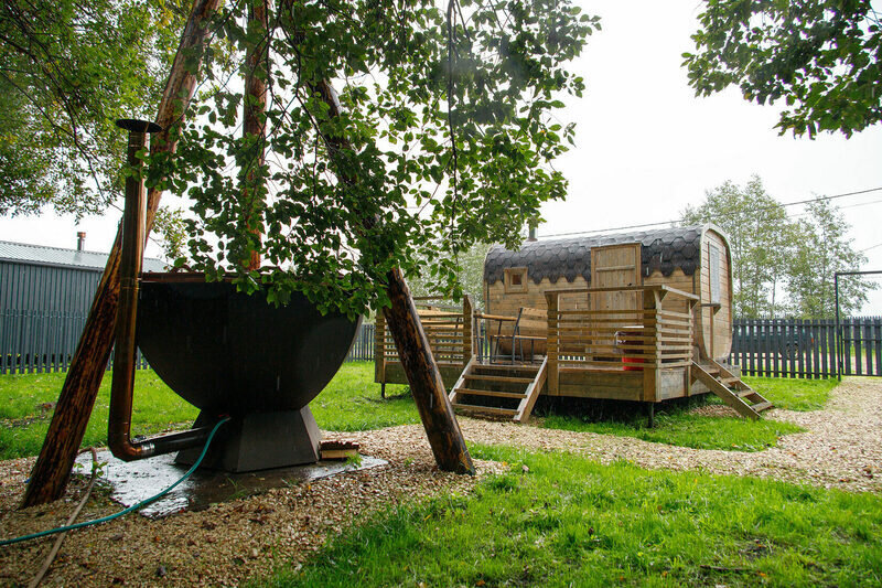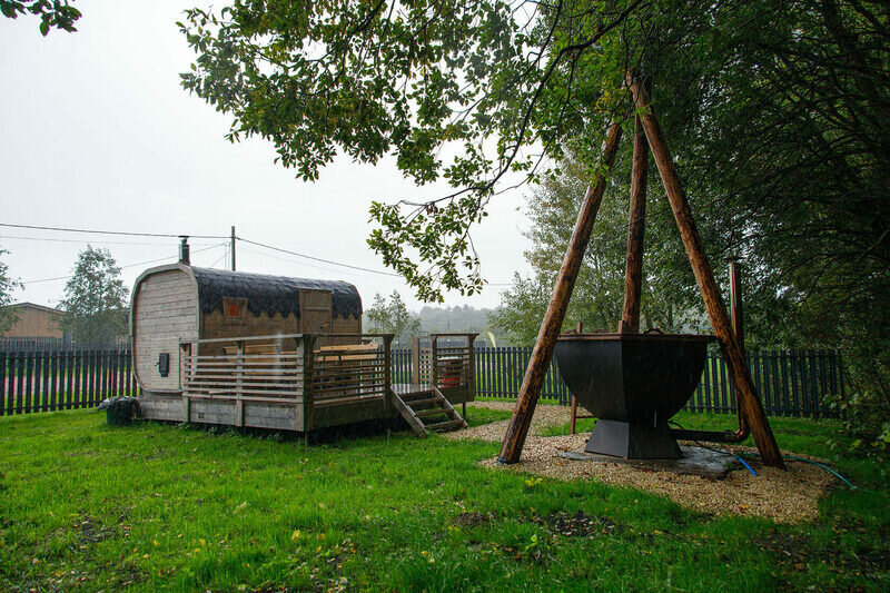 Баня-комфорт или баня-бочка и чан бронируются от 3х часов — отдельно в локации 150 метров до локации Вест.