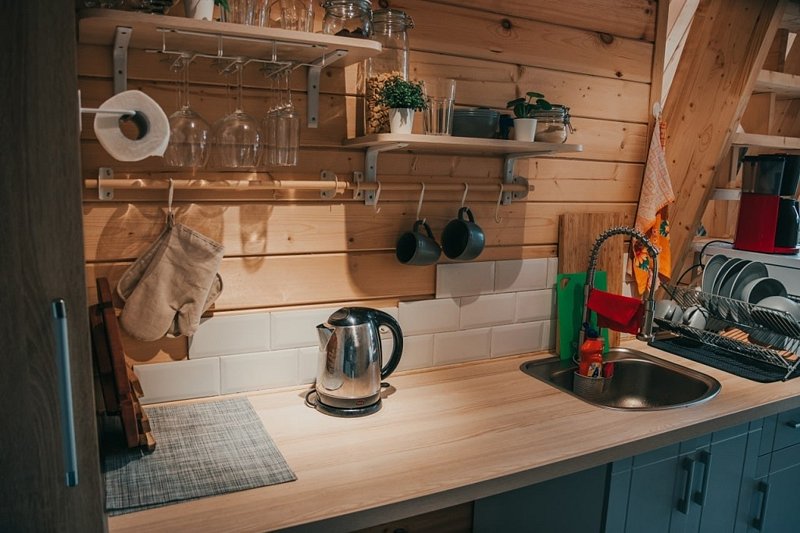 Комфортное размещение до четырех гостей. 1 этаж: кухня, гостиная, санузел. Большой раскладной диван-кровать. 2 этаж: двуспальная кровать.