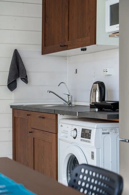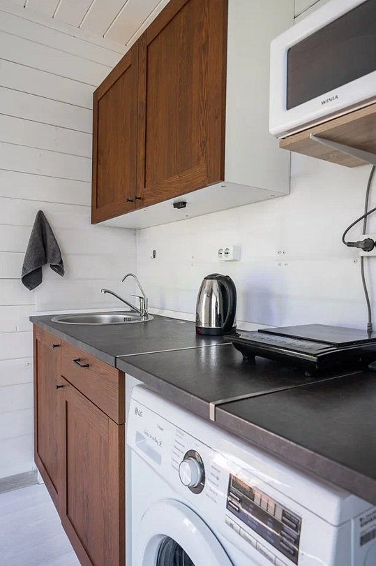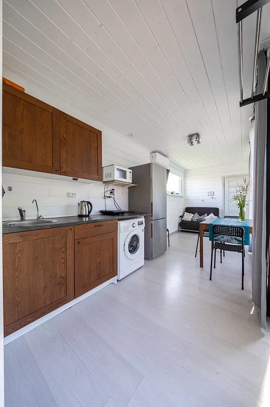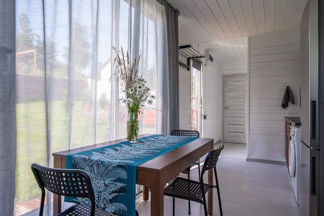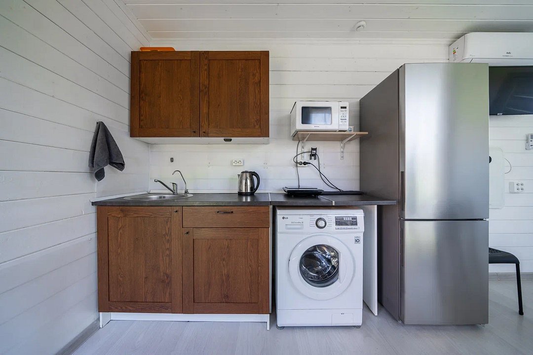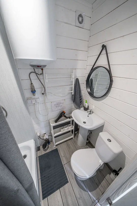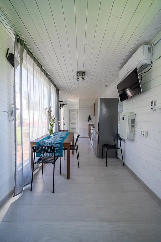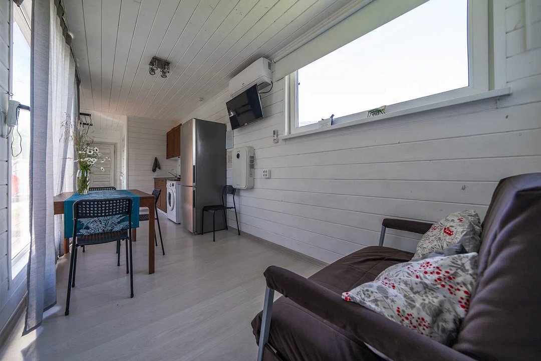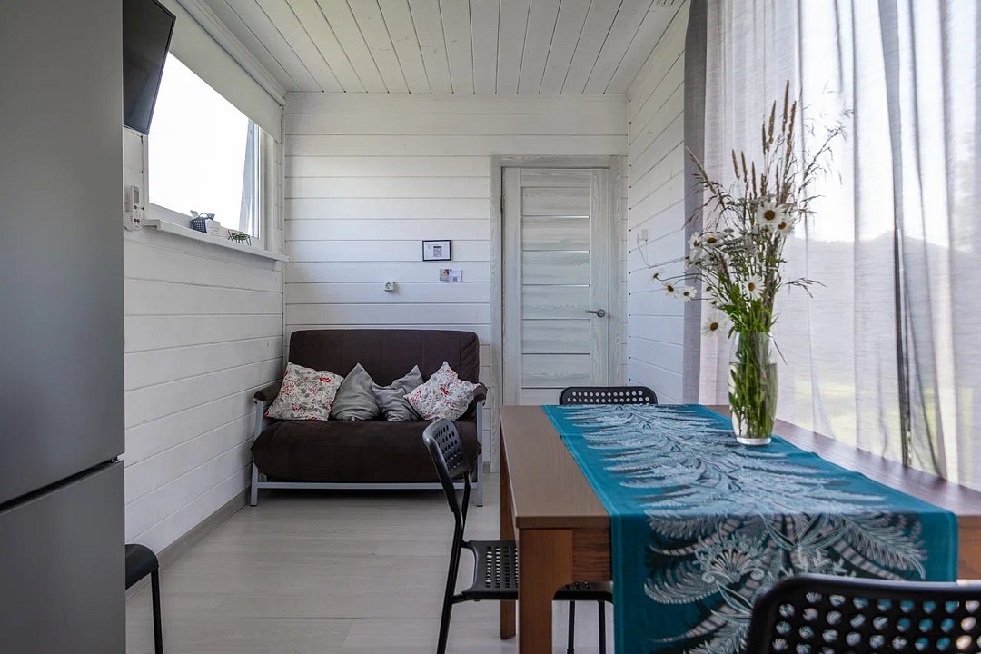 Дом оборудован всем необходимым для того, чтобы проживание было максимально комфортны: предусмотрена удобная мебель, бытовая техника, санузел, Wi-Fi и телевизор с подписками на онлайн-кинотеатрам.