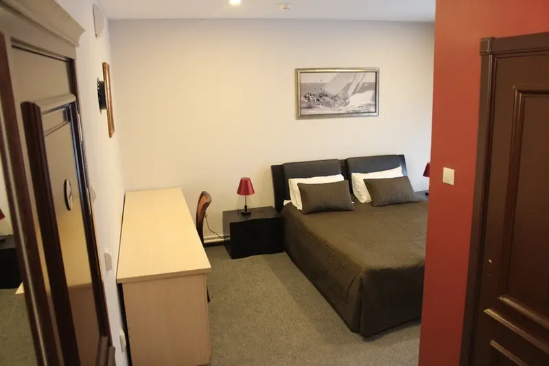 Номер категории "Стандарт" современного бизнес-отеля с удобной новой мебелью, ЖК телевизорами, бесплатным Wi-Fi, ванными комнатами с душем и туалетом.