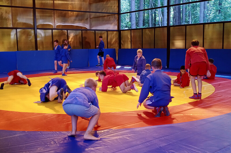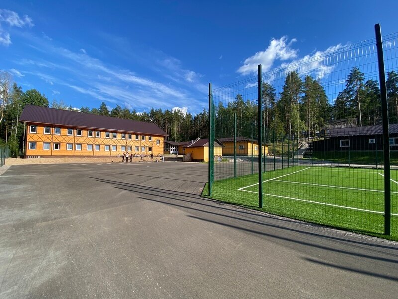 На территории оборудовано несколько спортивных площадок для игр в баскетбол, волейбол, настольный теннис, беговая дорожка, спортивные залы, баня и финская сауна.