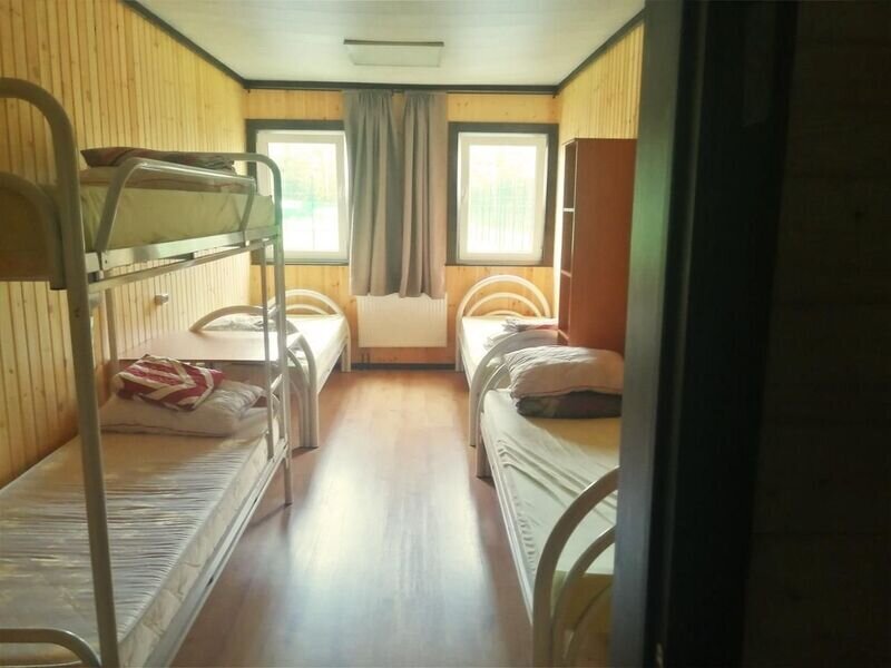 Три односпальные кровати, одна двухъярусная кроватьВ гостиничном номере