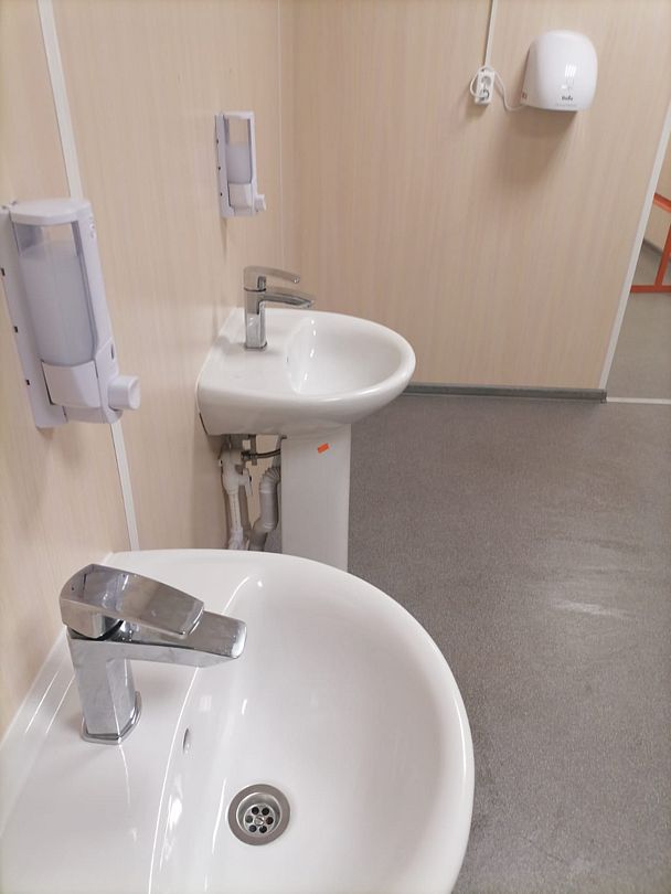 Есть отдельная кухня с холодильником и микроволновкой, где можно разогреть пищу и поесть. Отдельная комната со стиральной машиной.