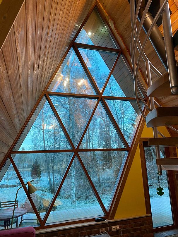 В ванной комнате вы найдете все необходимое: фен, душ, мягкие полотенца. Панорамные окна первого этажа открывают великолепный вид на озеро, придают особый шарм вашему отдыху. Теплые полы согреют вас в любое время года, а кондиционер обеспечит комфорт, регулируя температуру помещения в зависимости от ваших предпочтений.