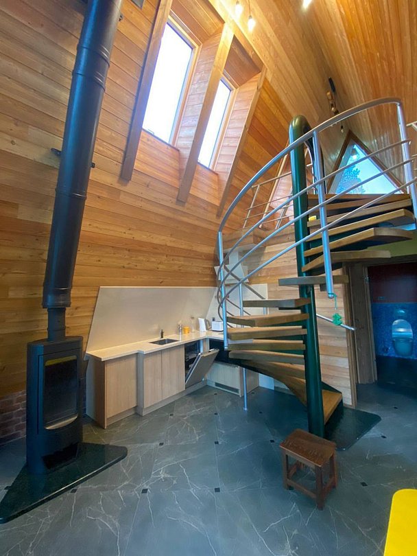 Коттедж оборудован всем необходимым для комфортного проживания: две спальни с двуспальными кроватями, гостиная с диваном, полностью оборудованная кухня, санузел, тёплый пол, камин, Wi-Fi.
