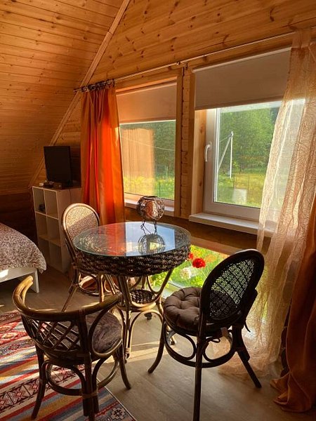 Для 6 гостей (2+2+2 дополнительно) 2 уютные спальни и большой диван-кровать в просторной кухне-гостиной, откуда открывается отличный вид на озеро.