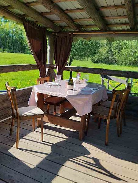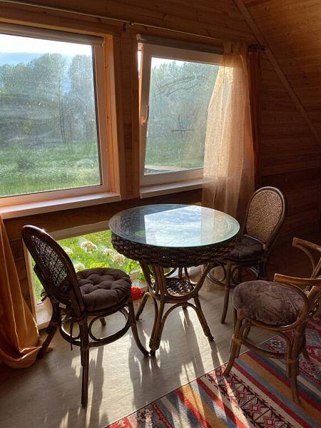 На участке располагается новая баня из сибирского кедра, просторная, шестиметровая, с комнатой отдыха, рассчитанная на 5 человек. Березовый веник - 250₽.