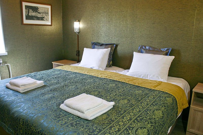 Двухместный номер с двуспальной кроватью и собственной ванной комнатой.