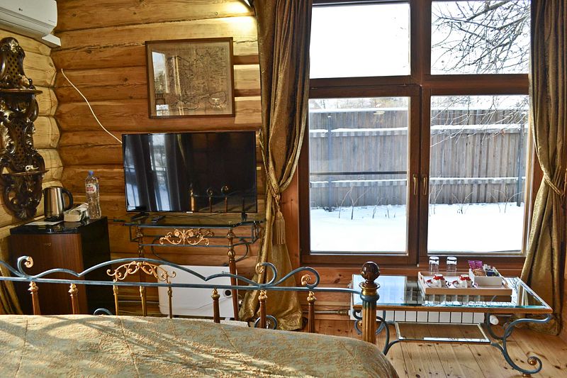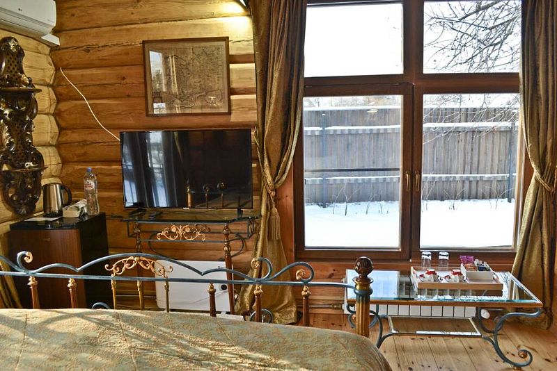 Просторный двухместный номер с панорамными окнами и видом на реку Волхов.