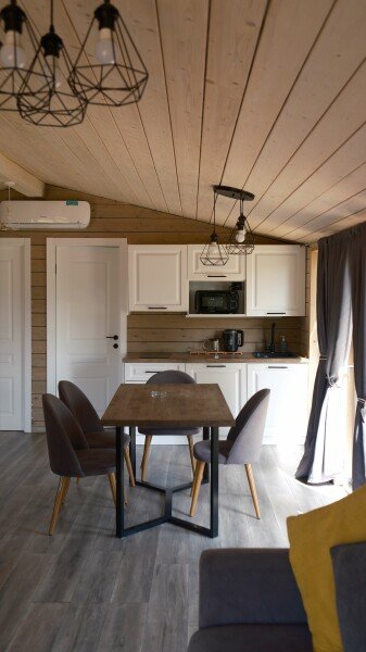 Для размещения предлагается несколько вариантов домиков, каждый из которых имеет свою террасу с мангалом и зоной отдыха. В распоряжении отдыхающих уютные смарт-дома для 2-4-х гостей, комфортабельные дома для проживания 2-6 человек и дома для 2-6 гостей с видом на озеро.