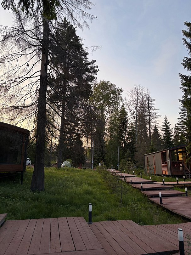 Здесь тишина озера сочетается с изяществом берез и густым еловым лесом. Пребывание в этом уголке природы запомнится поющими лесными птицами, красочными закатами, уютными вечерами с горячим какао и приятным времяпровождением с близкими.