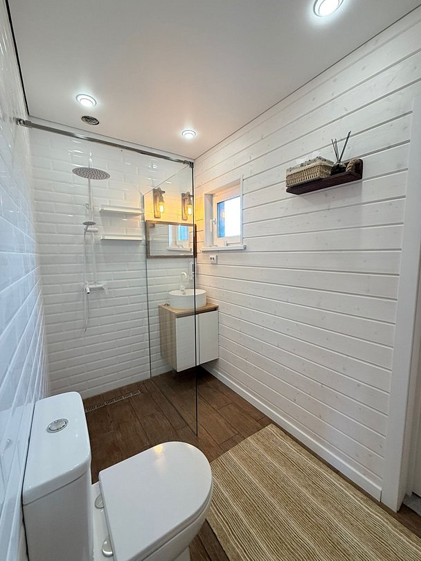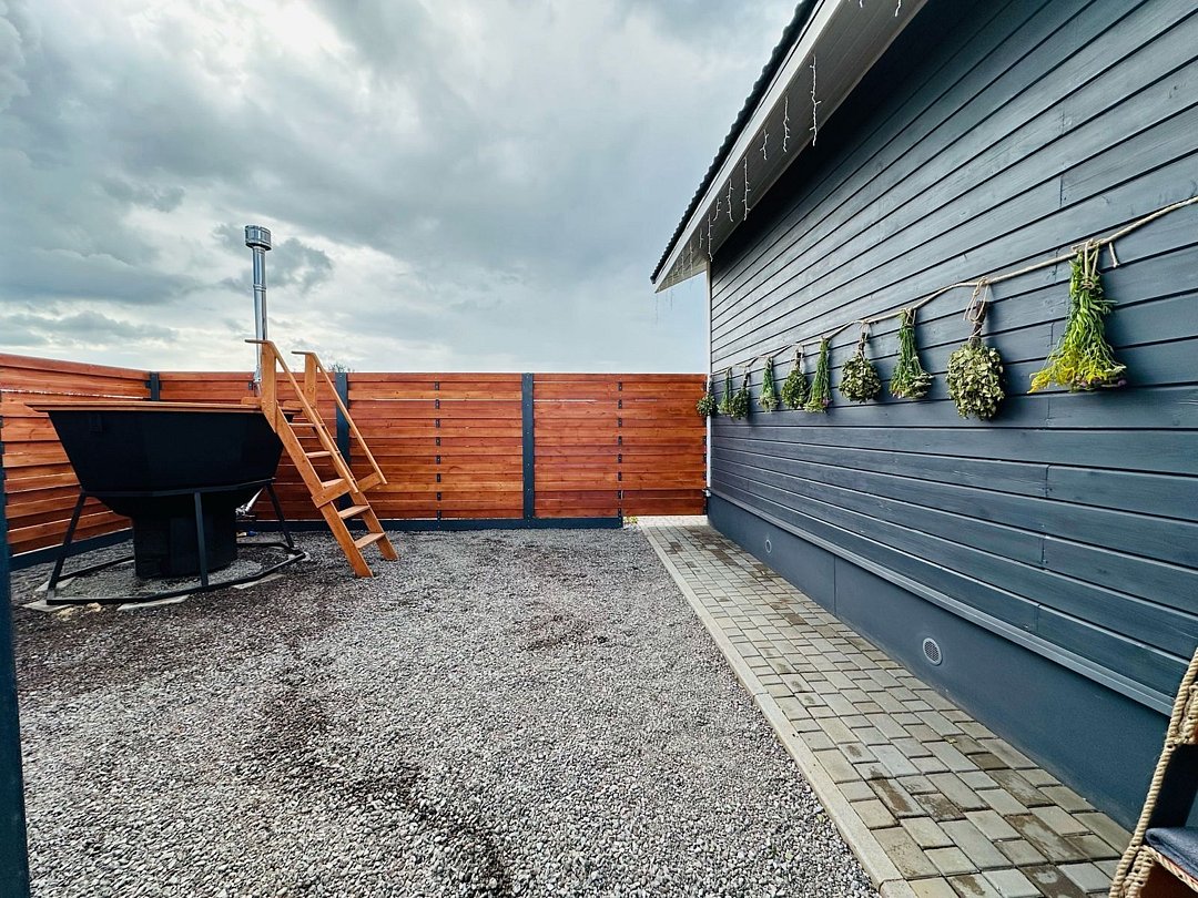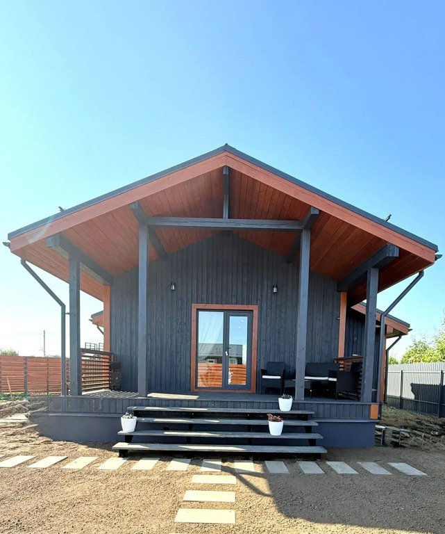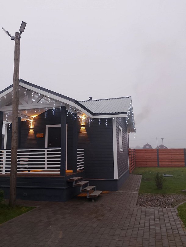 Дом 30 м2, в доме две комнаты, кухонная зона, отдельный с/у, большая терраса для отдыха на свежем воздухе.