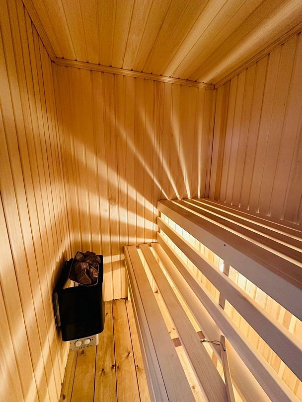 Русская баня на дровах, просторная парная, большая помывочная, оборудованная комната отдыха с кухней.