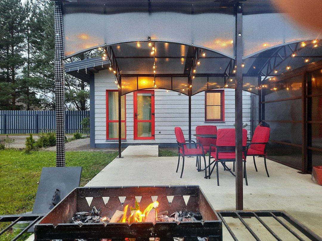На территории в распоряжении гостей площадка для барбекю с навесом и мангалом и баня-бочка. Туристы, путешествующие на автомобиле, могут припарковать его рядом с домом.