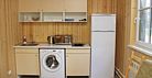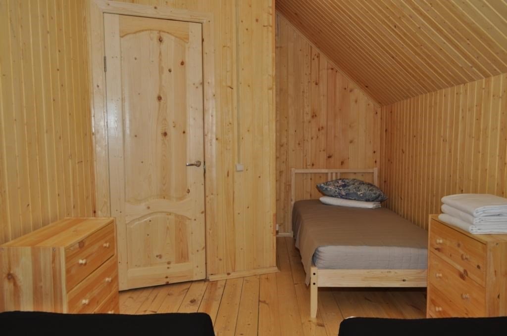На первом этаже - кухня, холодильник, телевизор, все удобства.