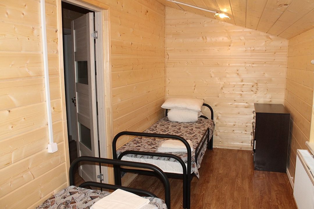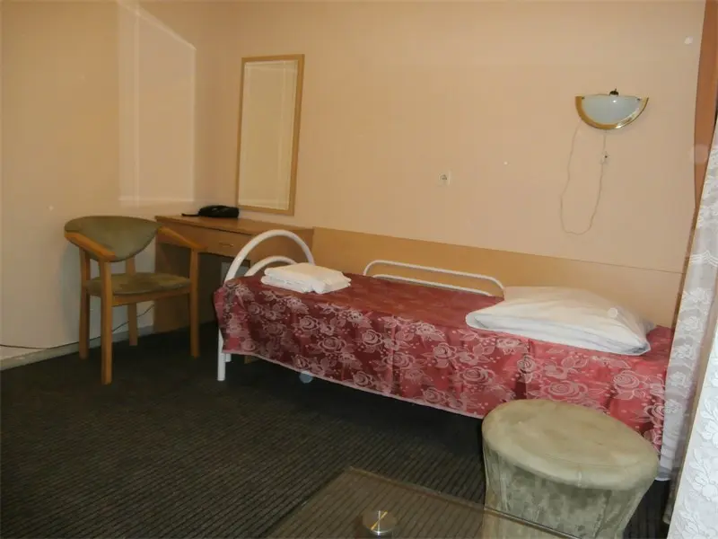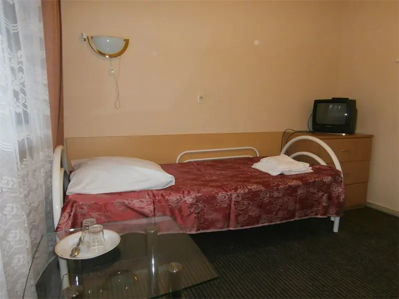 кровати, голый пол, телевизор стоит для красоты видимо. Не работает. Хотели сходить в бассейн, но забыли взять с собой шапочки резиновые. Здесь они оказались дороже, чем сам сеанс в бассейне. Сеанс в бассейне 45мин стоит 400р с человека, а шапочка 450р. Поэтому лучше не забывать брать с собой. Я из за этого расстроилась... Сам бассейн большой, чистый и говорят тёплый. -