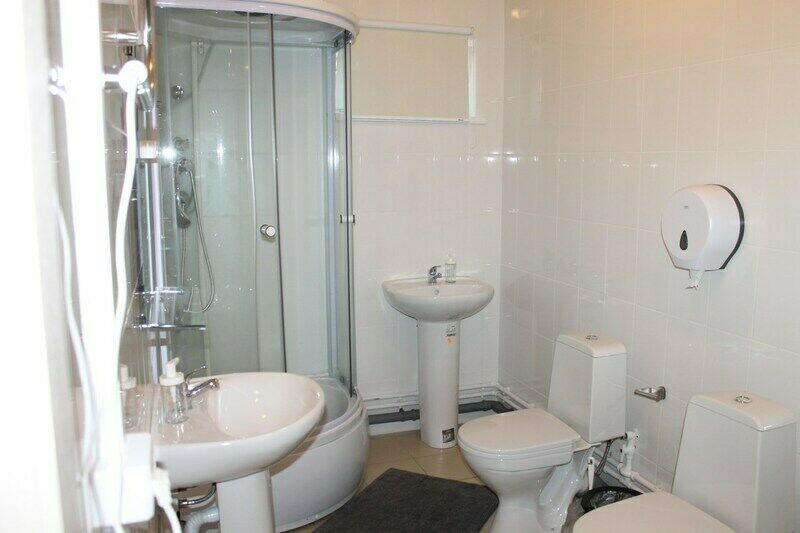 Городской телефон, душевая, туалет расположены на этаже.