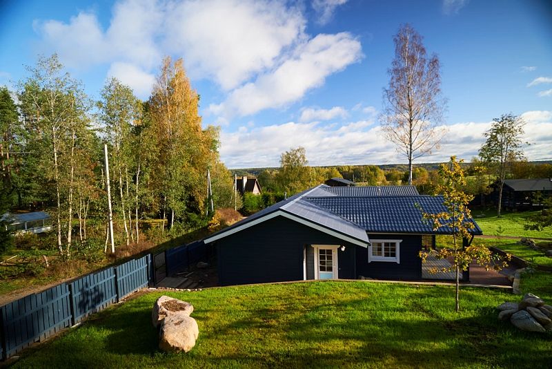 В доме три спальни и просторная гостиная с кухней, два санузла, дровяная сауна, камин.