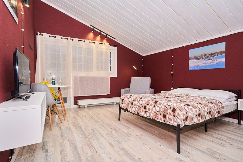 Уютная студия с мини-кухней на втором этаже двухэтажного коттеджа. С террасы открывается роскошный вид.