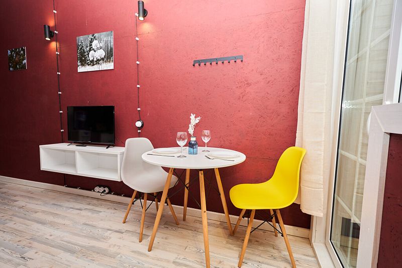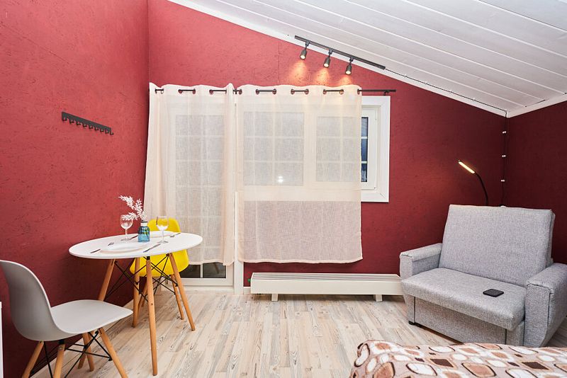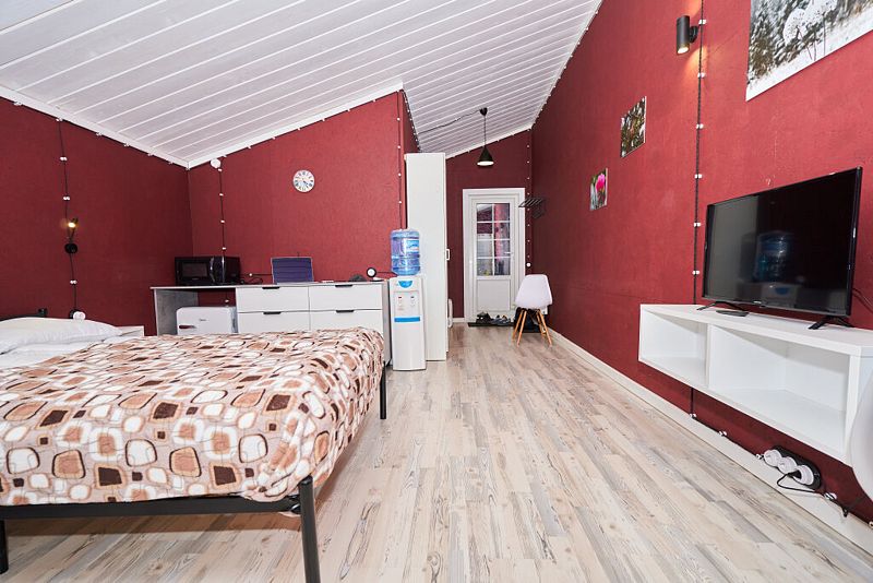Второй этаж: на втором этаже — две уютных студии с мини-кухнями. С террасы открывается роскошный вид — убедитесь сами. Ниже описание одной из комнат (вторая такая же).