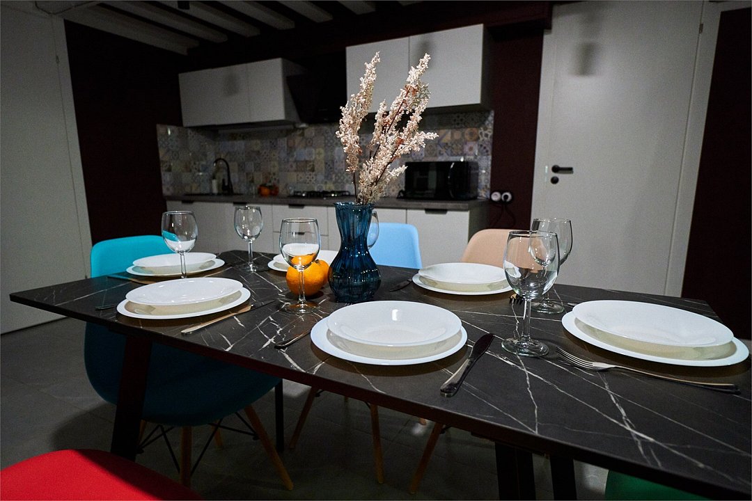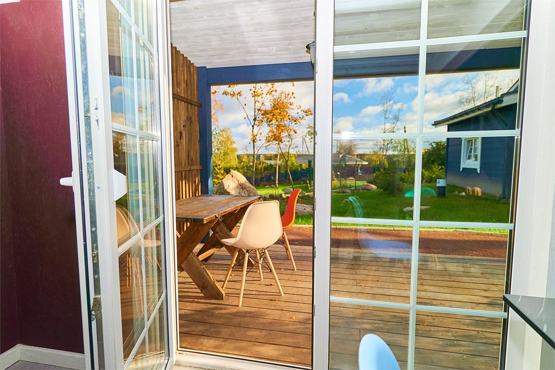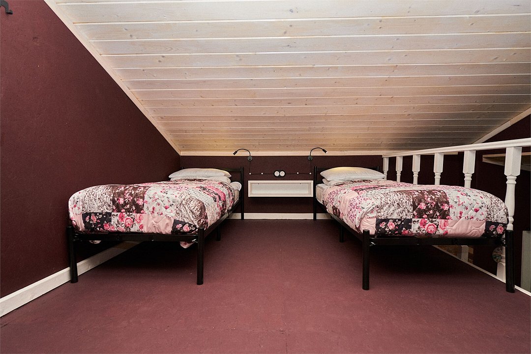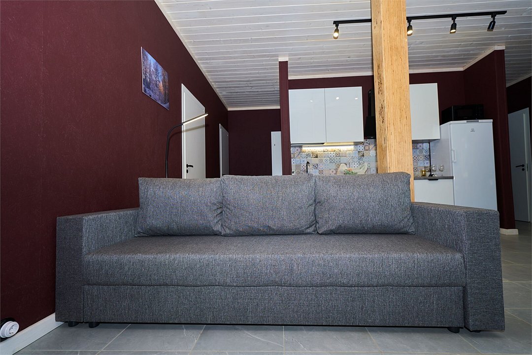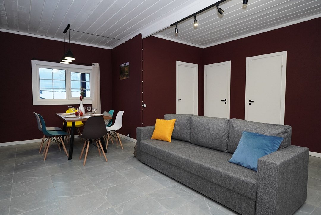 На первом этаже двухэтажного дома — номер с двумя спальнями и раскладным диваном в просторной кухне-гостиной.