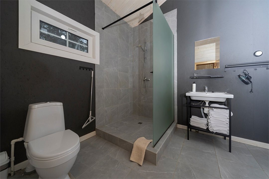 Кухня оснащена кулером с питьевой водой, необходимой утварью, посудой и техникой, включая газовую плиту и посудомоечную машину. Спальные места укомплектованы постельным бельём и полотенцами для душа. Для любителей зимних видов спорта есть кладовая комната для лыж и сноубордов.