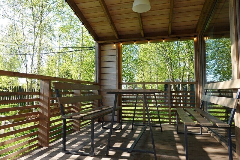 У каждого коттеджа мангал и терраса с уличной мебелью. Сушилки для обуви, хозяйственные принадлежности для уборки входят в стоимость.