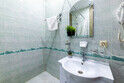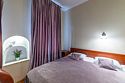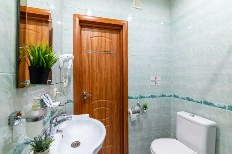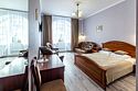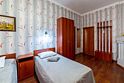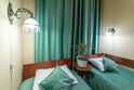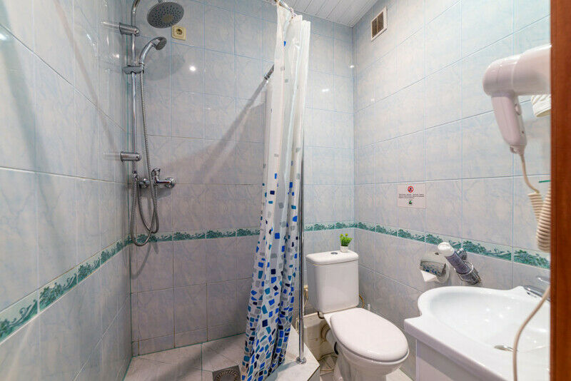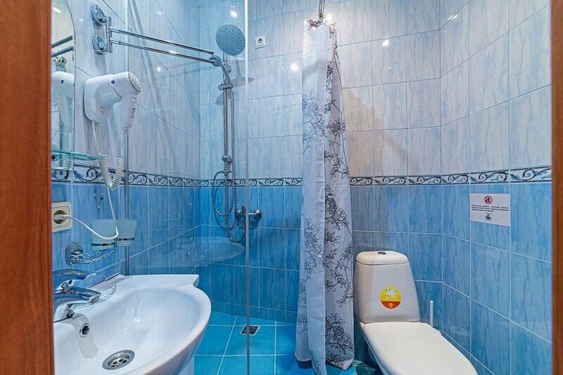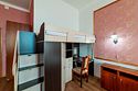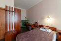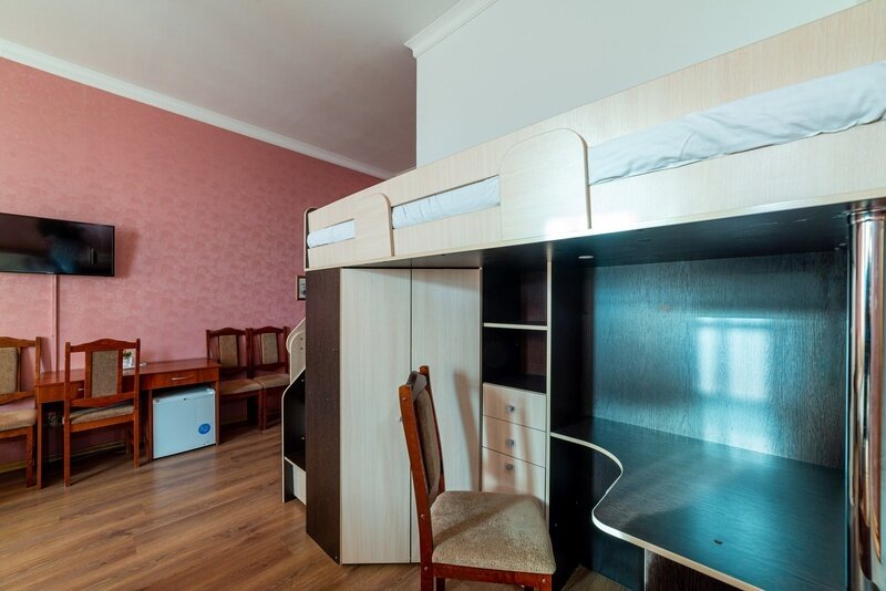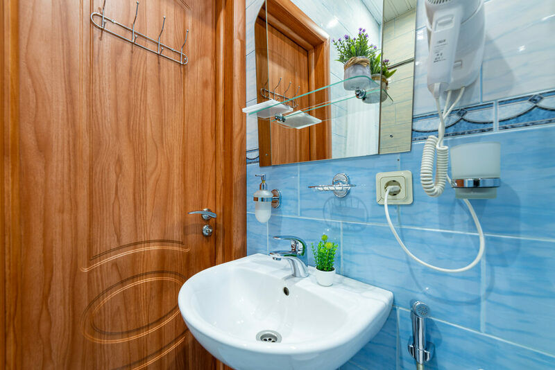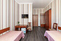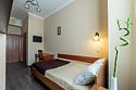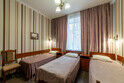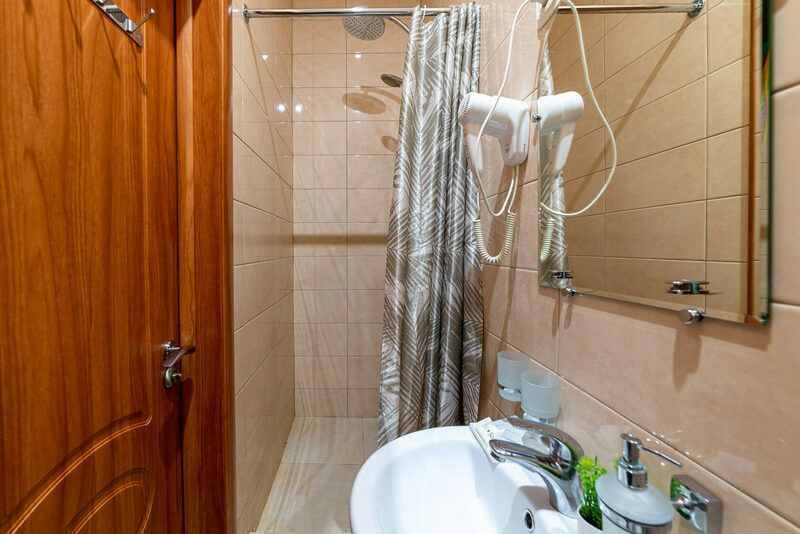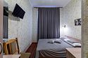 Номер оформлен в светлых тонах, из окон открывается вид на внутренний двор. Номер оснащены полуторной кроватью, прикроватными тумбами и комбинированной детской кроватью-шкафом, письменным столом, телевизором, мини-холодильником. В номере есть только туалет и умывальник. Общие душевые комнаты расположены рядом с номером на этаже. Гостям предоставляются тапки, туалетные принадлежности, полотенца, фен, утюг и гладильная доска. Во всех номерах доступен беспроводной интернет Wi-fi.