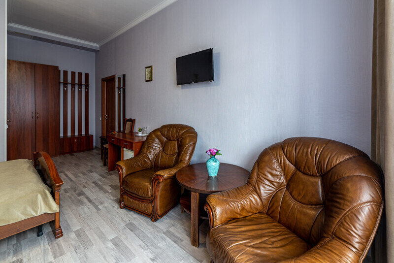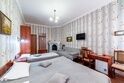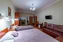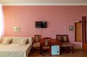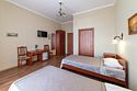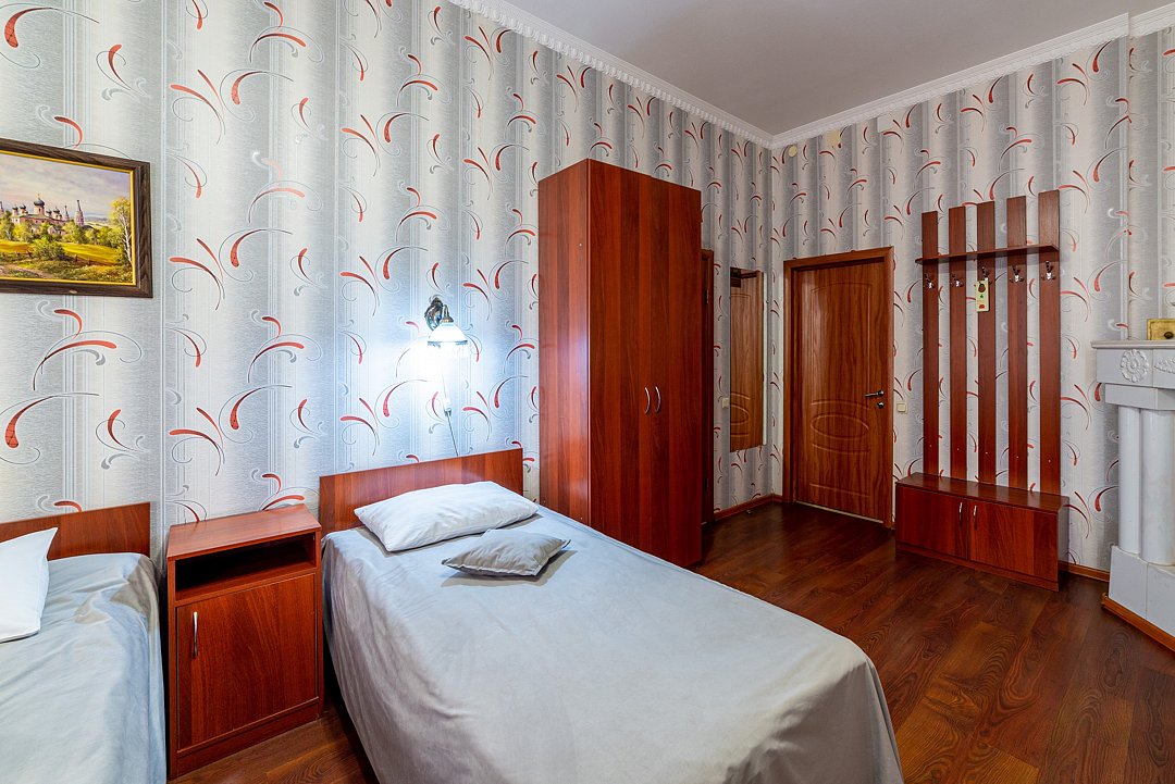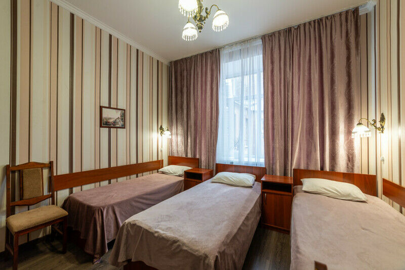 Номера оформлен в светлых тонах. Из окон открывается на улицу Некрасова и соседний дом. Номер оснащены 2 односпальными кроватями и диваном двуспальным, письменным столом, телевизором, мини-холодильником. В номере есть только туалет и умывальник. Общие душевые комнаты расположены рядом с номерам на этаже. Гостям предоставляются тапки, туалетные принадлежности, полотенца, фен, утюг и гладильная доска. Во всех номерах доступен беспроводной интернет Wi-fi.