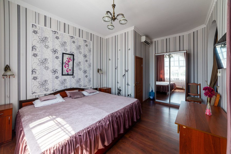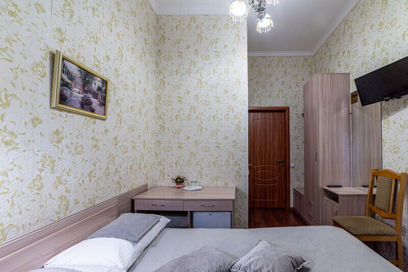 Номер оформлены в светлых тонах, из окон открывается вид на ул. Некрасова и на соседний исторический дом. Номер оснащен двуспальной кроватью, телевизором, мини-холодильником, письменным столом, прикроватными тумбами. В номере собственный санузел: душ, умывальник и унитаз. Гостям предоставляются полотенца, тапки, фен и туалетные принадлежности. Во всех номерах доступен беспроводной интернет Wi-fi. Общие удобства: Кухня, утюг и гладильная доска, стиральная машинка.