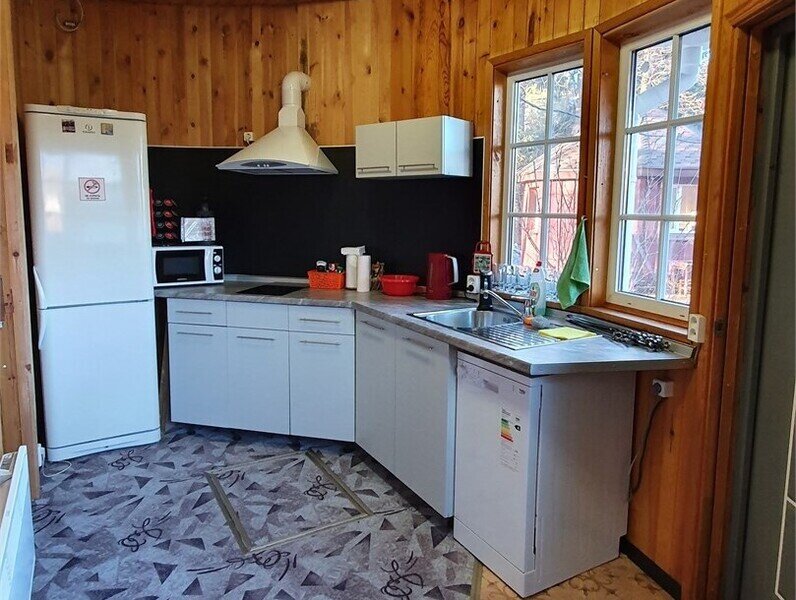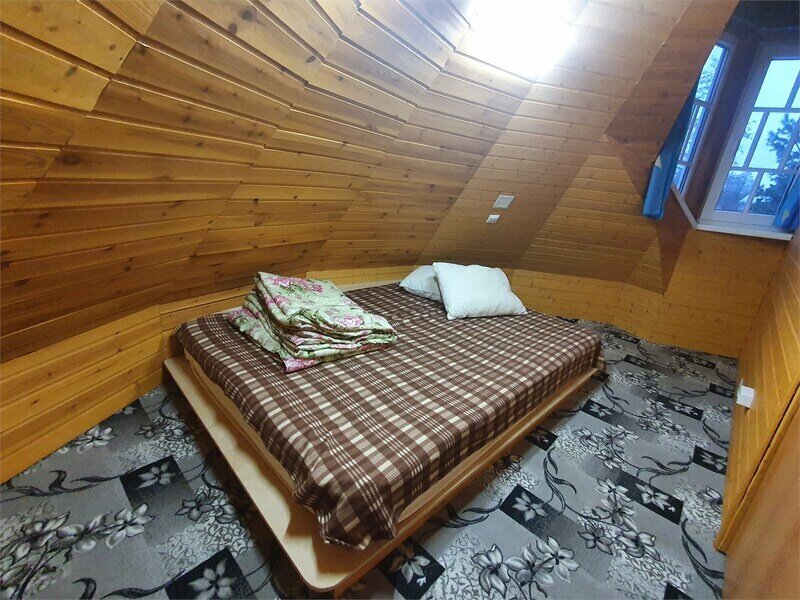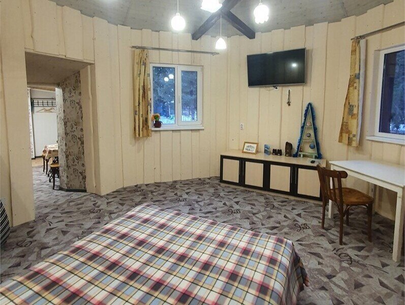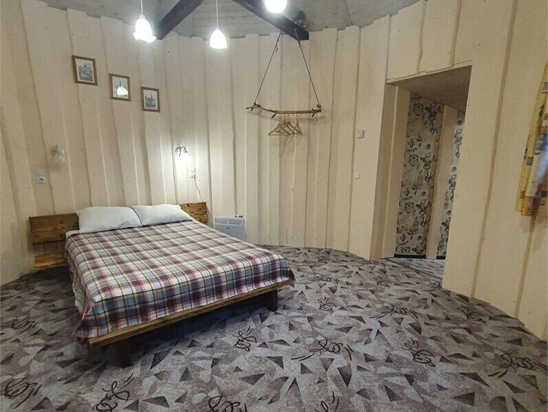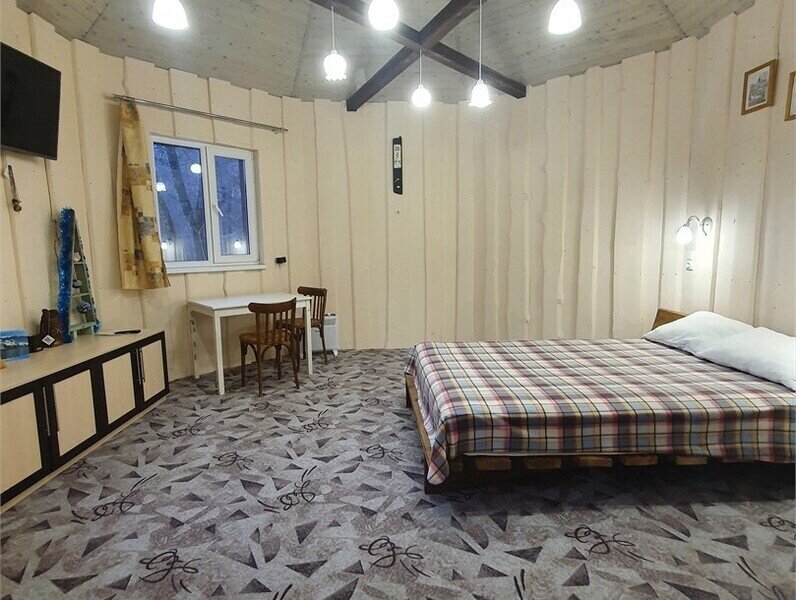 двуспальная кровать, доп.место - раскладушка, с/у, душ, ТВ, кухонный уголок
