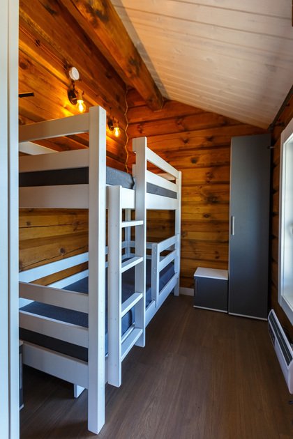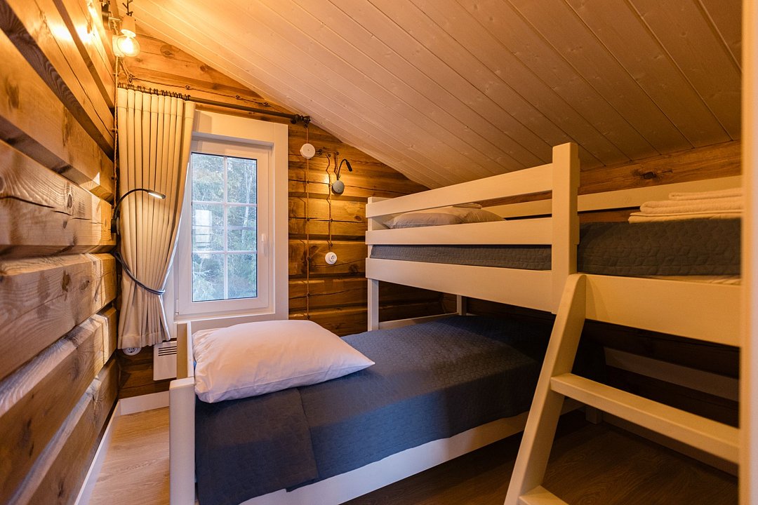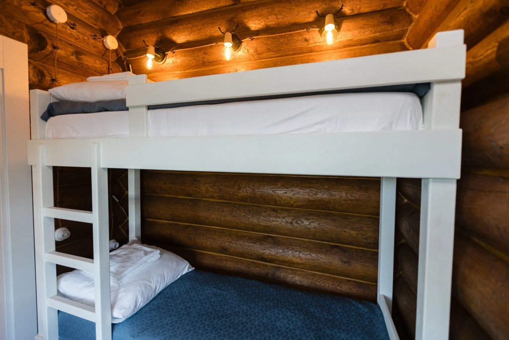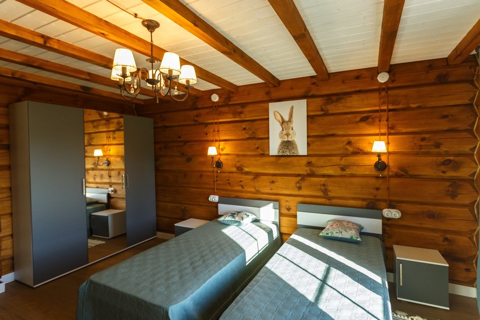 Одна двуспальная кровать, одна двухъярусная кроватьВ доме