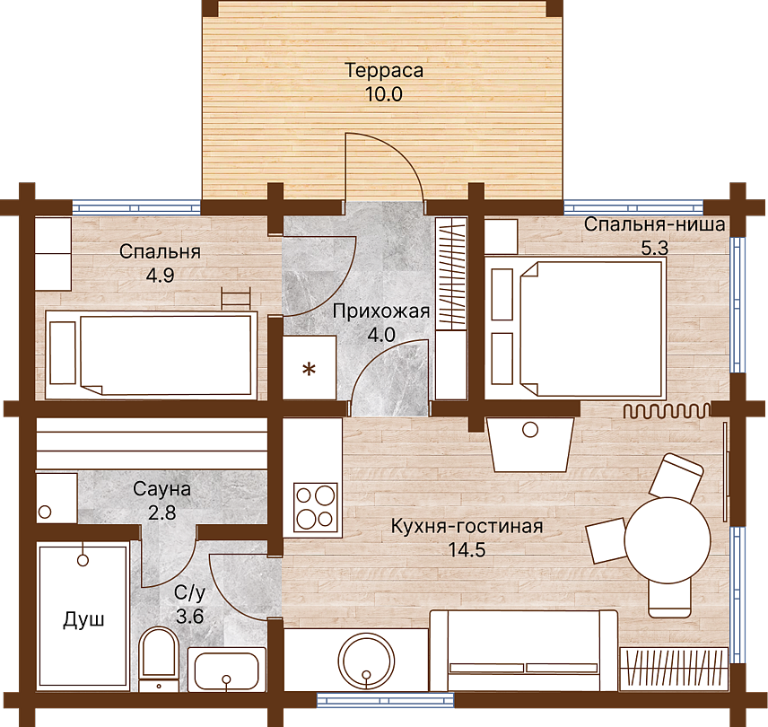 48 м2 · 4-х местный дом