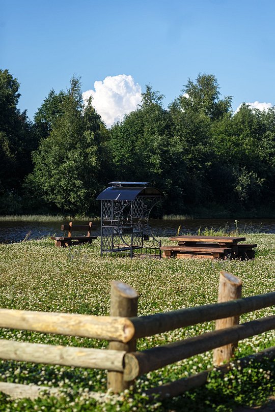 Частный дом «Теремок», расположенный на территории крестьянско-фермерского хозяйства «Приостровское», представляет собой современное и стильное жилье, всего в нескольких метрах от реки. Густой лес, окружающий дом, создает идеальные условия для отдыха и наслаждения природой. Гости могут наслаждаться теплыми вечерами у камина и отдыхать в сауне. Просторная территория в три гектара обеспечивает уединение и комфорт, что делает ее отличным местом для семейного отдыха.
