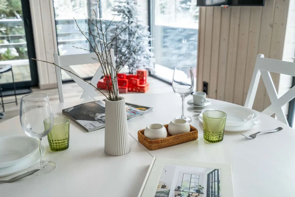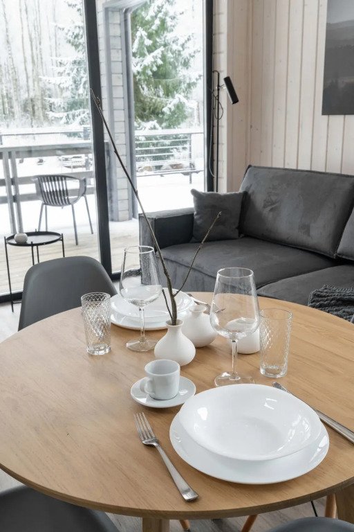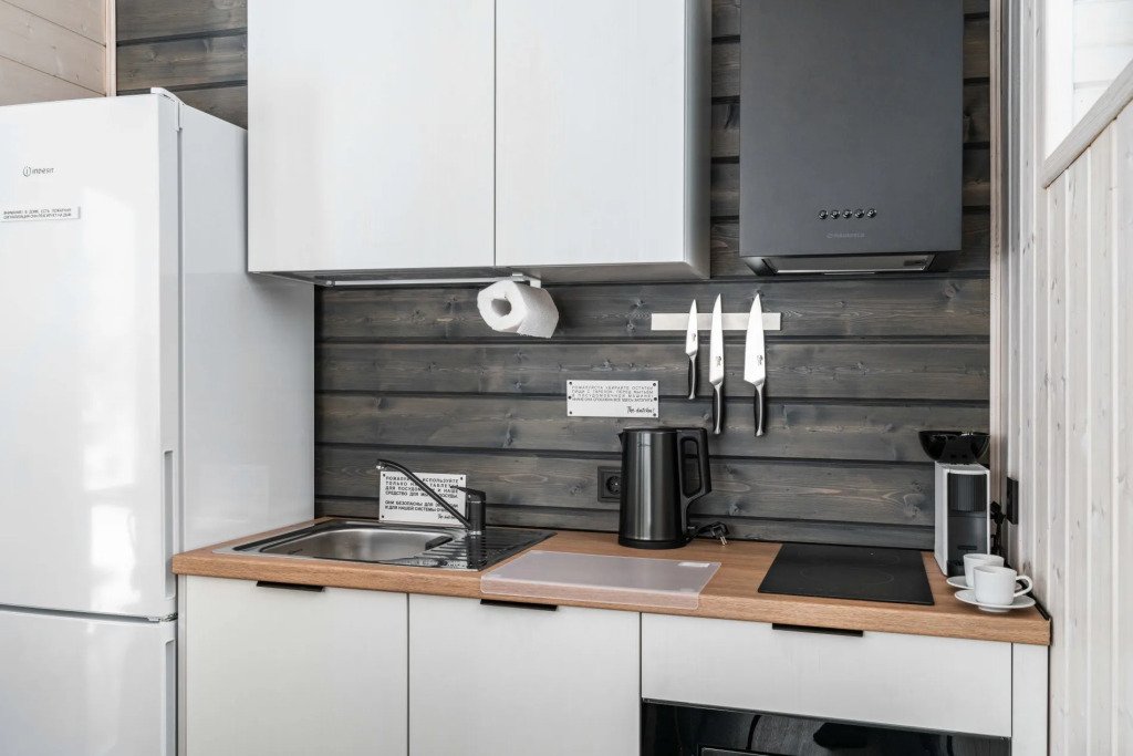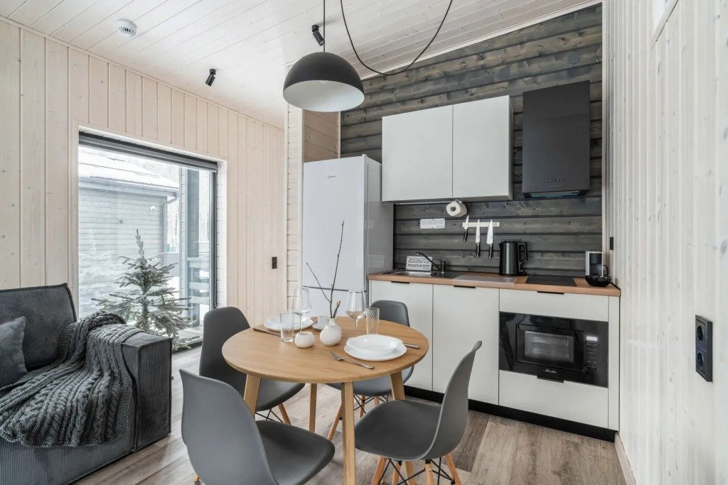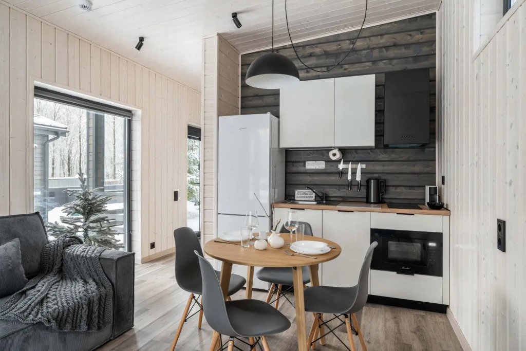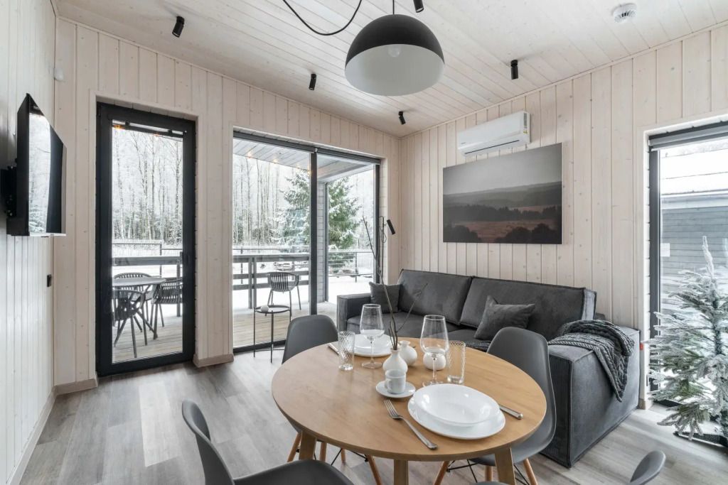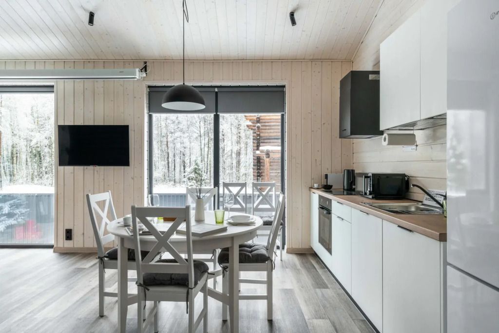 Дома на базе отдыха предназначены на 6, 4 и 2 гостей. В большой даче есть домашний кинотеатр. В большой и средней дачах есть двуспальные диваны.
